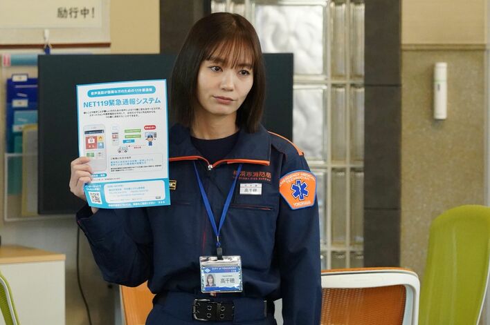 副台の箕輪健介(前原滉)のアドバイスのもと救急車を出場させる雪。
