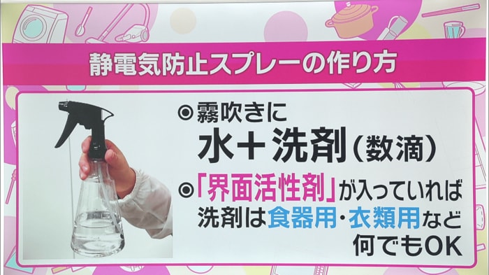 しかもこの「静電気防止スプレー」は、自宅でも簡単に作ることができるんです。