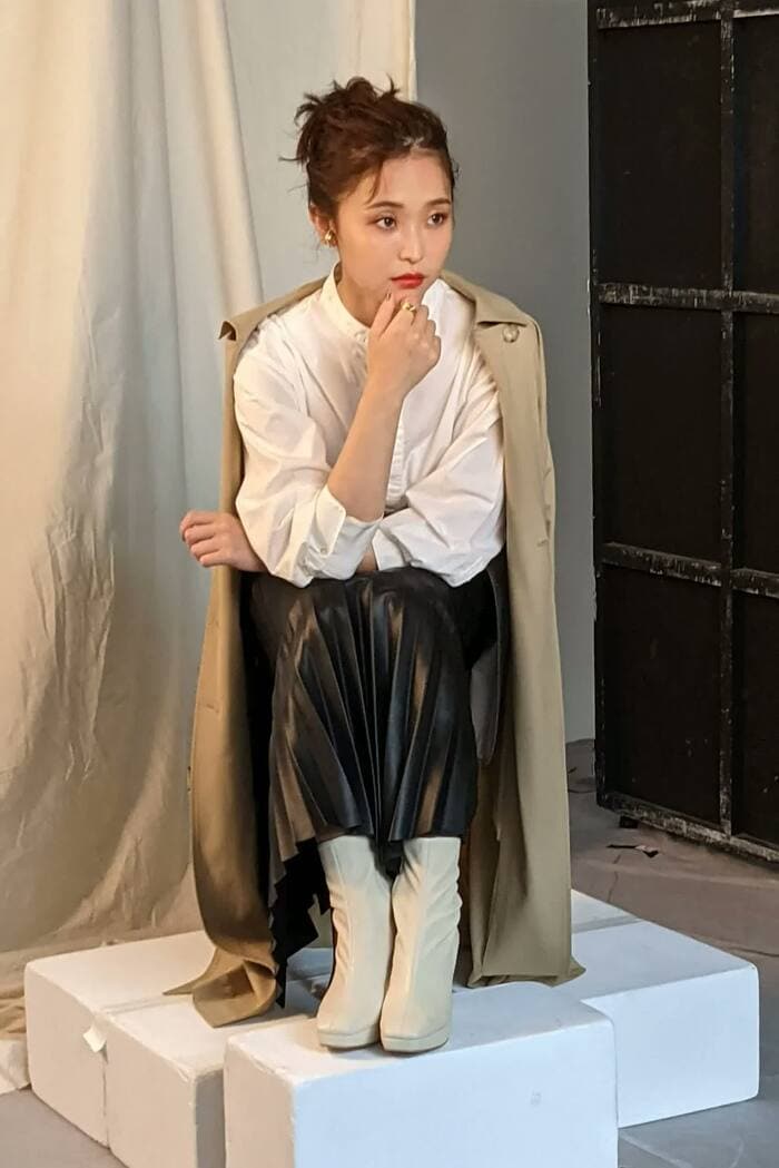 撮影では、コートの動きなど細かく調整されていたので、「私が動いたら手間が増えて申し訳ない…」と思い、ポーズを崩さないことを一番に考えていました。そして、クールな表情を頑張ってみましたが…ちゃんとクールに見えるのか心配です(笑)。
