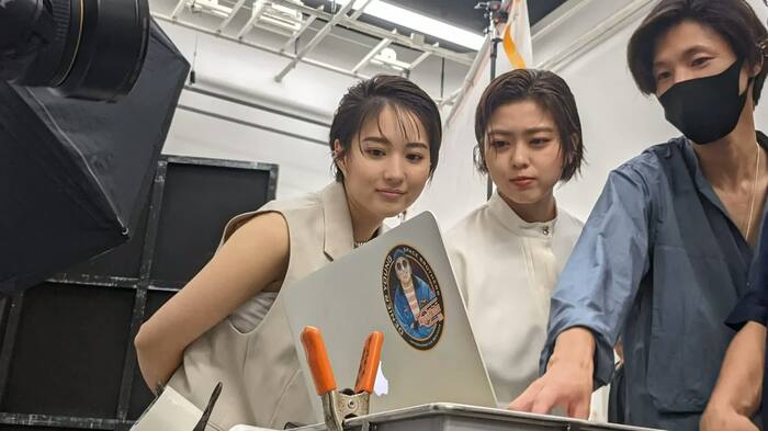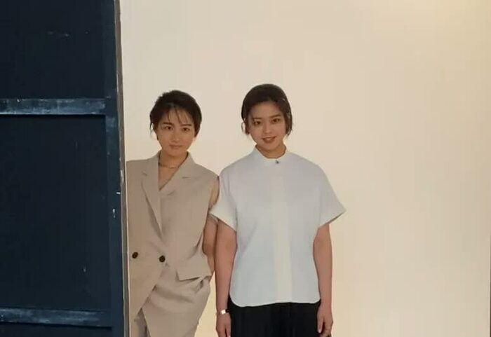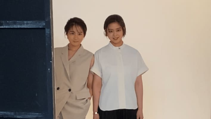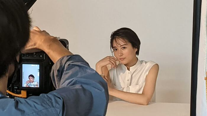そして、永尾アナと、モノトーンなスカートスタイルに着替えた杉原アナがカメラ前に立つと、さっそく撮影がスタート。スタッフが「すごくかっこいいんだけど!」と思わず声をあげるほど、クールな表情が決まっており、2人も写真を見て「うわ、こうなるんだ!」と驚きつつ、うれしそうな表情を見せていた。
