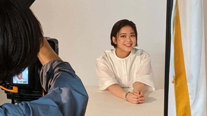 さらに、カメラマンから「かわいい系もください!」とリクエストされると、「かわいいって…」と、今度は照れ笑い。表情づくりに苦戦しながらの撮影となった。