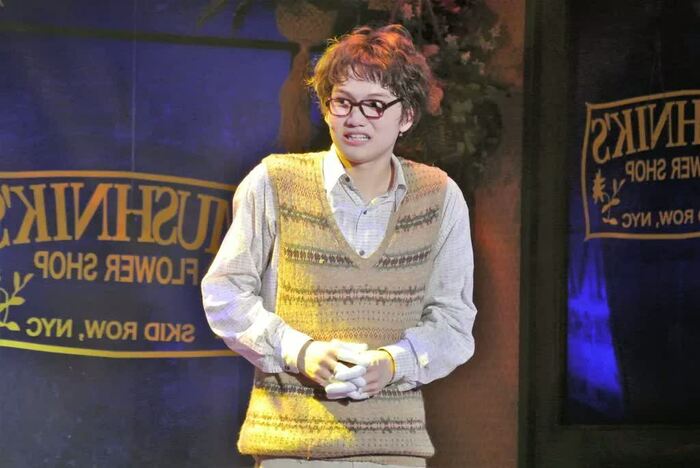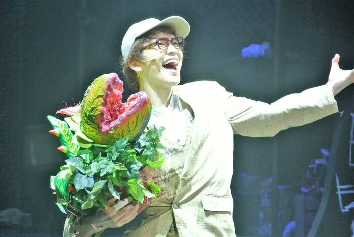 しかし、ひとたび歌い出せば、黒縁メガネの奥の瞳をキラキラと輝かせながら、シーモアが抱えた葛藤を力強い歌声にのせ、大粒の汗を流して熱演。オードリーⅡや、石井一孝扮するオリンとのやりとりをコミカルに演じた。