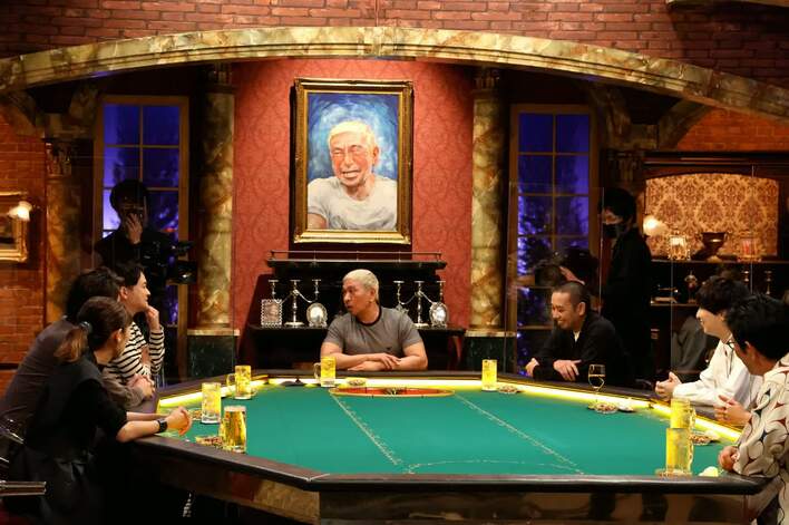 『人志松本のすべらない話』でおなじみの円卓を囲み、それぞれの好きなお酒で乾杯し宴(うたげ)がスタート。番組特製の“酒瓶ルーレット”でトークの順番を決定する。