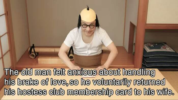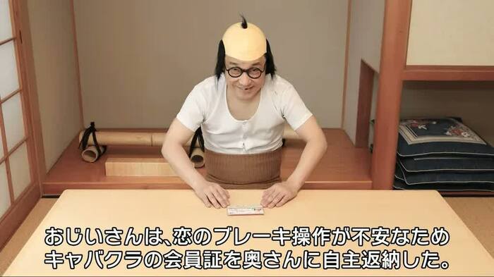 The old man felt anxious about handling his brake of love, so he voluntarily returned his hostess club membership card to his wife.