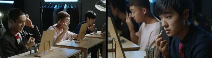 メンズメイクにより変身した四千頭身は、普段の雰囲気とは全然違うスタイリッシュな姿となり、さながら映画の主人公のような風格でスタッフを驚かせた。 お互いを褒め合うシーンも頻繁に見られ、和気あいあいとした雰囲気で順調に撮影を終えた。