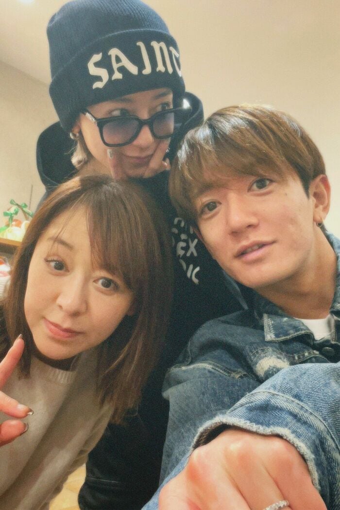 2枚目では、夫の大倉士門を交えた3人で寄り添い、仲睦まじい自撮り写真なども公開。