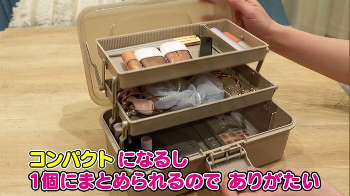 コンパクトな箱を開くと、中は3段タイプの大容量小物入れになります。仕切りの幅を自由に調整できるのも人気のポイントです。小物を一つにまとめてベッドや収納に持って行ったりでき、持ち運びやすい点などが人気の理由だといいます。