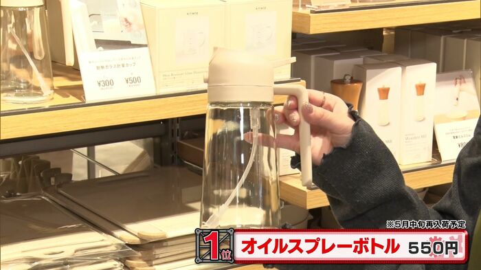 料理で油をしくときに使うスプレーボトル。油の入れすぎを防ぐスプレー機能があり、レバーを押すだけで簡単に少量の油をフライパンにしくことができます。通常のオイル差しとしても使える2wayタイプが人気のポイントだといいます。(※25年5月中旬再入荷予定)