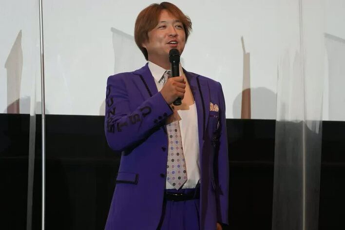 純バイオレット役の酒井は「健康センター、キャバレー回りを経て、紅白にも参加することができた純烈ですが、紅白出場が叶った頃に“紅白の向こう側”として思い描いていた構想が映画『純烈ジャー』です」としみじみ。「純烈が映画初主演を飾ります。(今日の完成披露の舞台挨拶は)僕の夢でもあった映画が出来上がったことに感謝する日になりました。皆さんが『もう1回観たいな』と思ってくれればありがたいです」と思いを述べると、大きな拍手に包まれた。