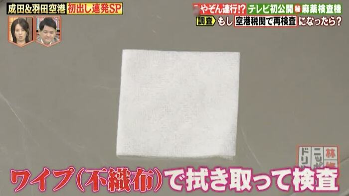 別室では、職員がみやぞんの衣服の表面を不織布(ワイプ)でゴシゴシ。薬物の常習者の場合、洋服に薬物の微粒子が付いていることが多いためだ。