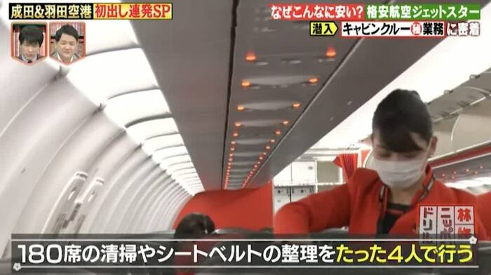 別府が調査したのは、格安航空会社のジェットスター。別府は、格安運賃の秘密を握る客室乗務員=キャビンクルー(CC)と共に、成田〜新千歳間を往復。すると、低運賃を実現するためにCCが行っている4つの工夫が明らかになった。