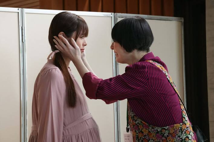 前作の佐知は、警察から逃げる三雲華(みくも・はな/深田恭子)をかくまう場末のスナックのママとして登場したが、今作では妊娠した華が訪れた「沐浴(もくよく)講座」で出会う助産師として登場。不景気でスナックが立ちゆかなくなり、昔、助産師だった経験をいかし働いているという設定だ。