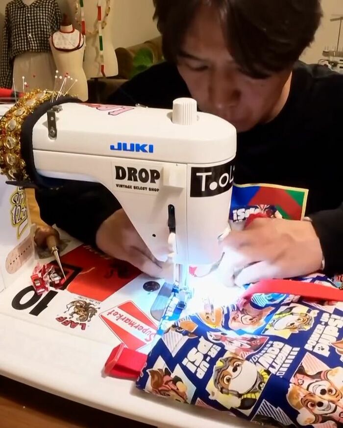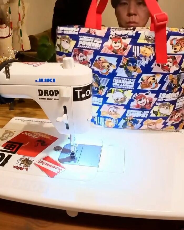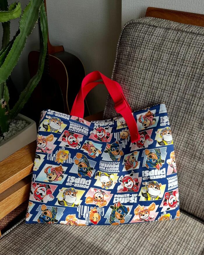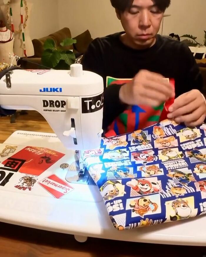 「知人の子供が4月から入園するのでパウパトロールの通園バッグを作って欲しいとの依頼があり作成しました」と、依頼があったことを明かしたコカドさんは、いつものように真剣な顔でミシンと向き合っています。