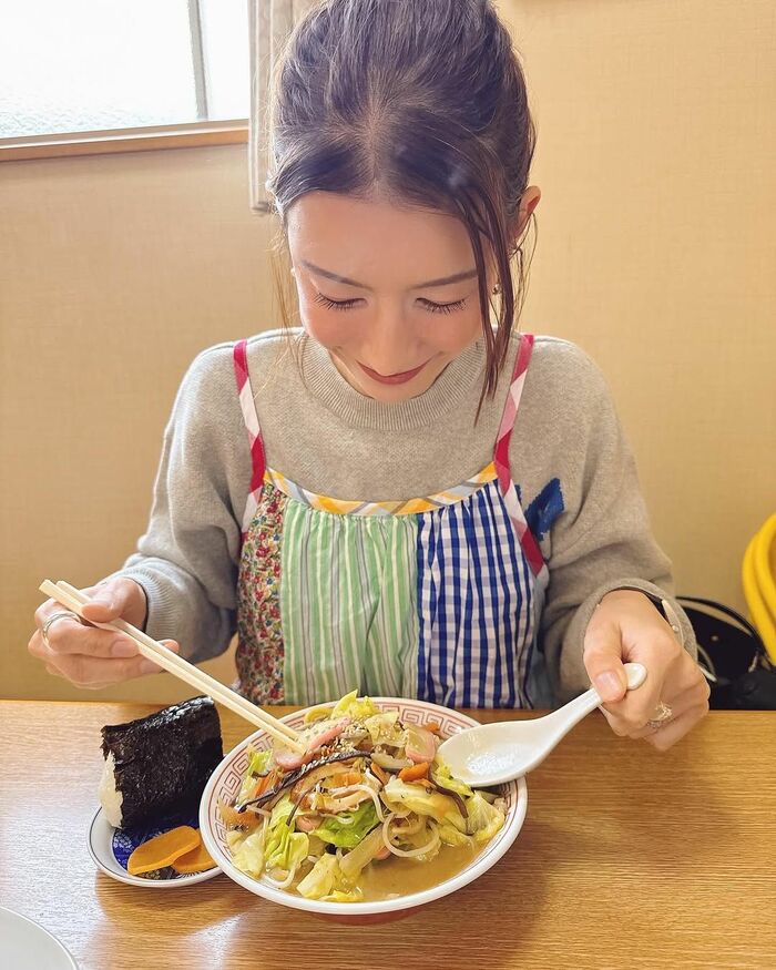 さらに、パフェを食べる前には大好きなラーメン店でご飯を食べていたことも明かしたスザンヌさん。「久しぶりの#ラーメン横道 のハーフちゃんぽん、おにぎり、ぎょうざも食べちゃってたの(大好物美味しい)」と、大好きなちゃんぽんを目の前にして嬉しそうな表情も見せました。