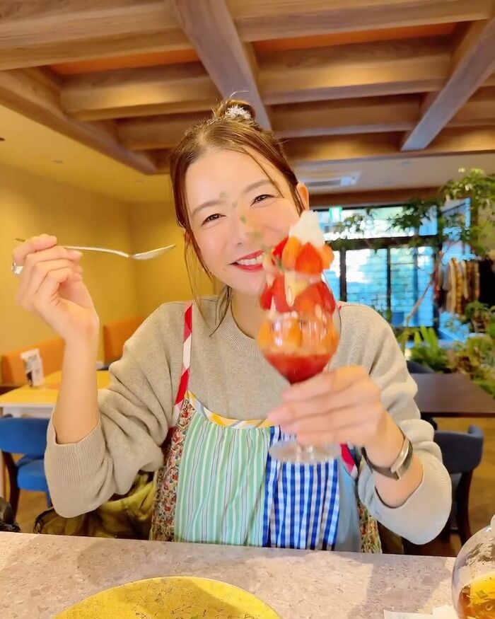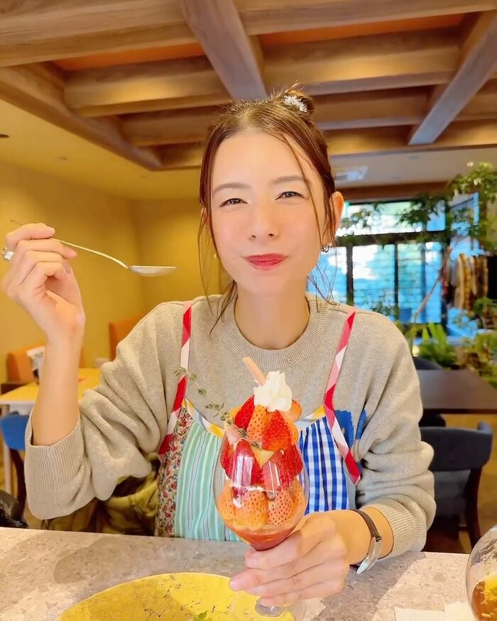 タレントのスザンヌさんが2025年3月9日に自身のインスタグラムを更新。スザンヌさんが経営する「KAWACHI BASE―龍栄荘―」の新作パフェを頬張るショットを公開しまいた。