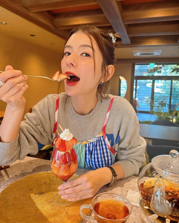 スザンヌさんは「あぁこれが食べたかったよ」と、自身が経営する『KAWACHI BASE―龍栄荘―』のメンションと共に3月からの新作“恋みのりと淡雪の贅沢いちごパフェ”を大きな口を開けて頬張る姿を公開しました。