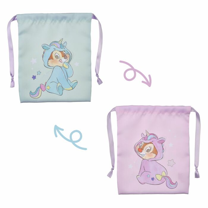他にも、旅行などお泊まりの時に活躍しそうな片面にチップ、もう片面にデールが大きく描かれた巾着や・・・。