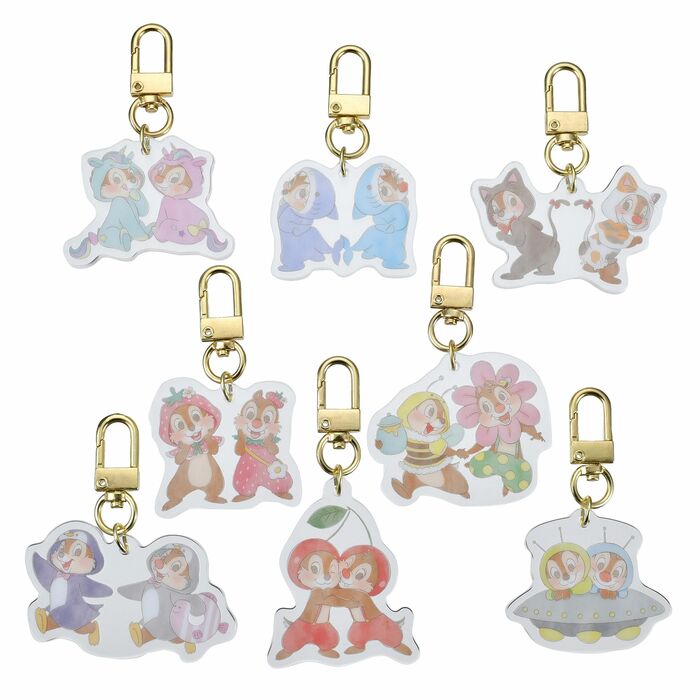 さらに、ユニコーンや、サメ、ペンギン、いちご、さくらんぼなど、さまざまなモチーフのコスチュームを身にまとったチップとデールの全8種のシークレットキーチェーンも登場。
