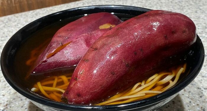 この斬新すぎる見た目のそばが生まれた理由について、担当者によると「さつまいもの美味しい食べ方・伝統的な食べ方と名代富士そばを素直に表現したもの」として誕生したといいます。