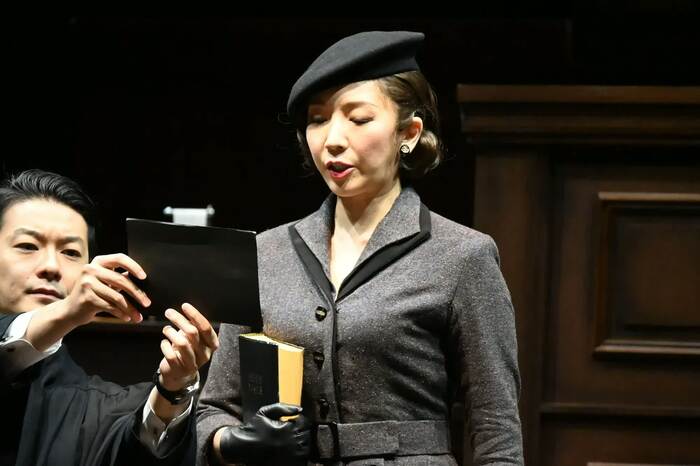 このシーンでは、レナード、ローマイン、マイヤーズが、息つく間もない応酬を繰り広げる。瀬奈が冷たい声で次々と驚きの証言をすると、舞台上の空気も一変。必死の形相で「無罪」を訴える小瀧のパワーは、観る者を圧倒する。