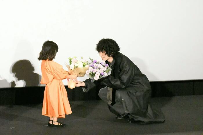 さらに、サプライズゲストとして、菅田の娘役を演じた稲垣来泉ちゃんと中野翠咲ちゃんが登場。2人から花束を受け取ると、菅田は嬉しそうに笑顔を見せた。