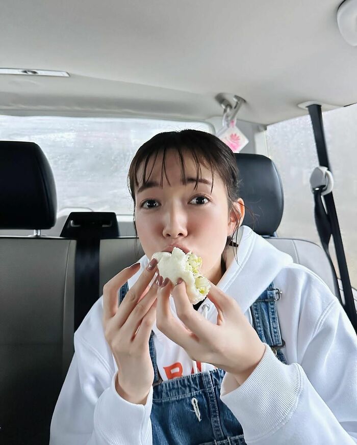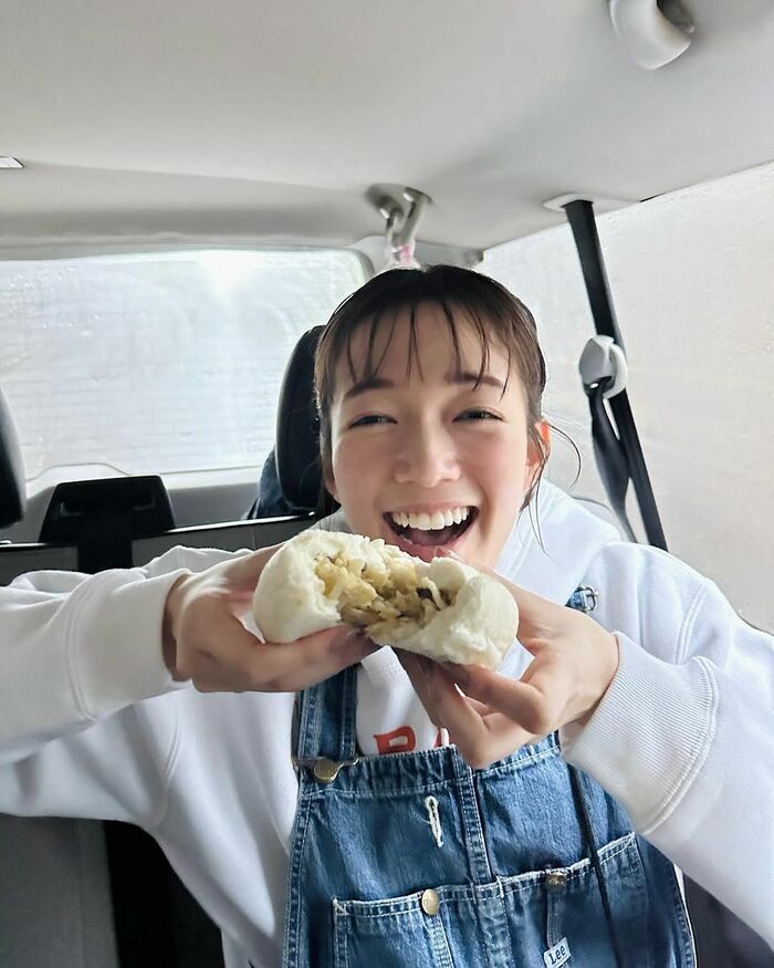 さらに、佐藤さんは、車の中で中華まんを食べている様子も公開!両手で中華まんを半分に割って、うれしそうな笑顔を見せる姿から…