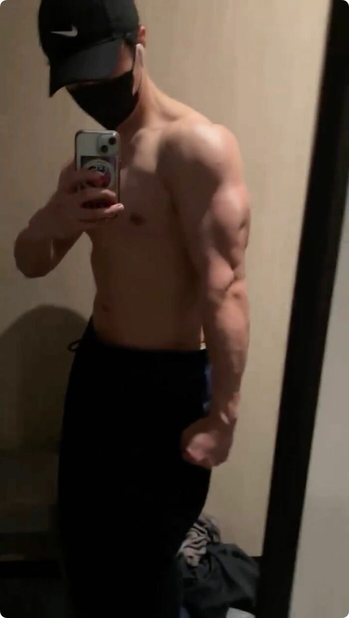 最後には、キツいトレーニングで見事にパンプアップした腕も披露。