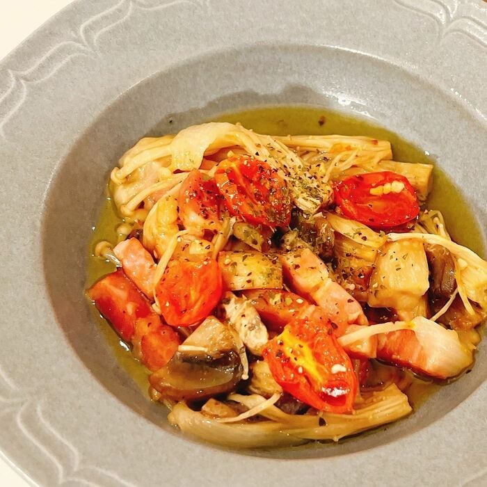 トマトやきのこ、ベーコンなど具だくさんな「きのこのアヒージョ」など、とてもおいしそうな料理ばかり。