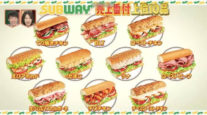 世界で約4万店を展開する世界最大の飲食チェーン「サブウェイ」。売上上位10品には、ジューシーな肉系からサラダ系、高タンパク低カロリーのチキン系がランクインした。