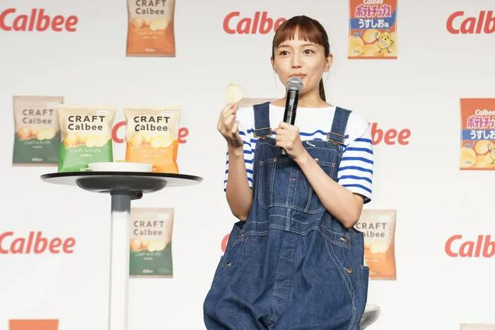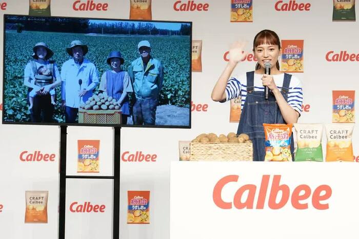 8月31日(火)、カルビー新商品「じゃがいもチップス」新CM発表会が行われ、イメージキャラクターとして起用された川口春奈が登壇した。