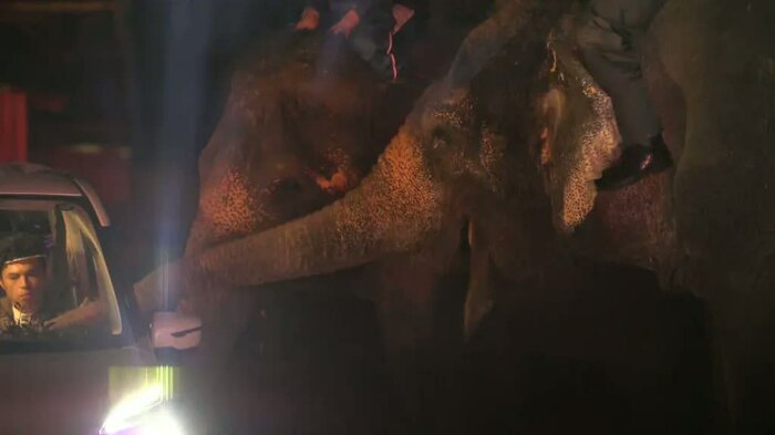 ツアーの最後を飾ったのは、アジアゾウの住むエリア。のっしのっしと現れ、車の中まで鼻を伸ばしてエサをねだる2頭のアジアゾウ。小島がエサを差し出すと、ゾウは器用に鼻で受け取り、口に運ぶ。2頭のゾウの鼻が自分の至近距離にやってきた小島は、「風を感じます」と鼻息をリアル体験。その後、クイズを出す間も、エサをねだり続けるゾウたちに、圧倒されっぱなしの小島だった。