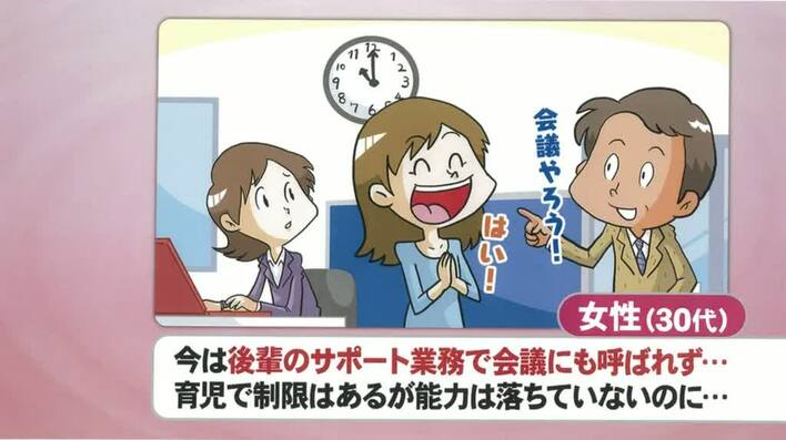 「出産前はバリバリ働いていたが、出産後は後輩のサポート業務担当に。仕事の能力が落ちたわけではないのに、モヤモヤする」という30代女性のエピソードでは、視聴者の意見を募る「せきらら投票」で「モヤモヤする気持ちを理解できるか?」と問いかけた。