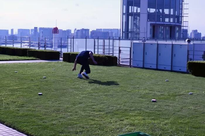 続く競技は「右往左往!ランプタッチワークアウト」。ランダムに光る6箇所のランプをタッチしていき、20秒間で何回タッチできるかを競うゲームだ。