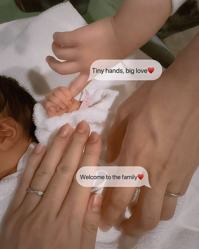 公開された写真を見ると、長女と思われる指を小さな手で握る赤ちゃんの姿が。おなか辺りには、菊地さんと夫と思われる手が添えられています。ハートの絵文字とともに「Welcome to the family」と喜びをつづっていました。