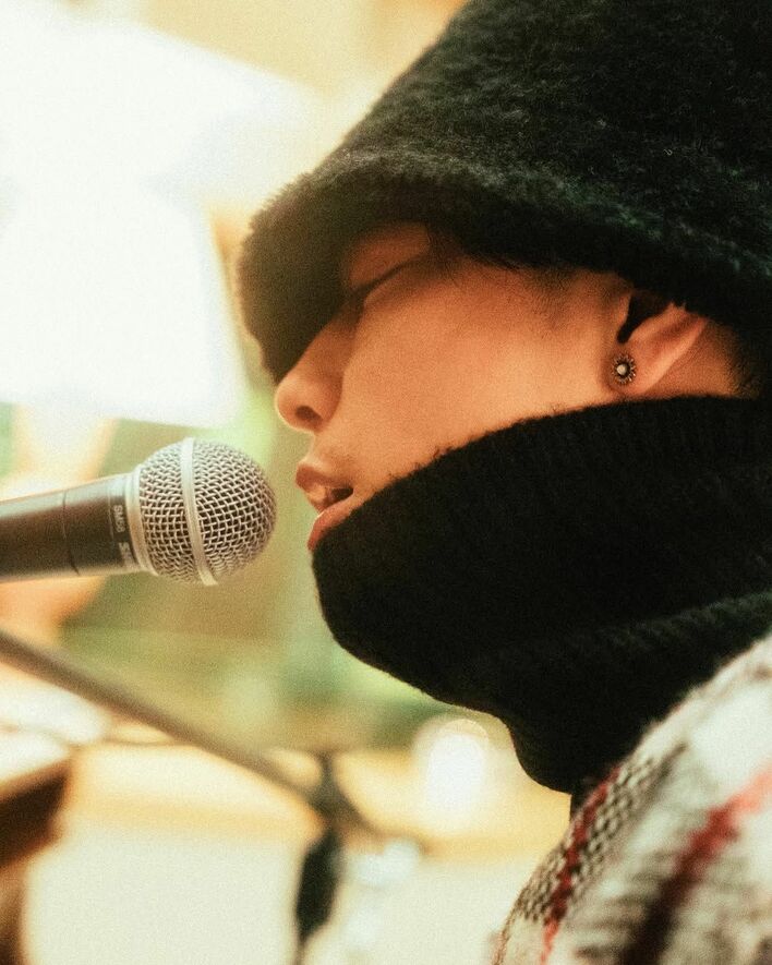 別の写真では、マイクに向かって口を開けて歌っているような様子も。