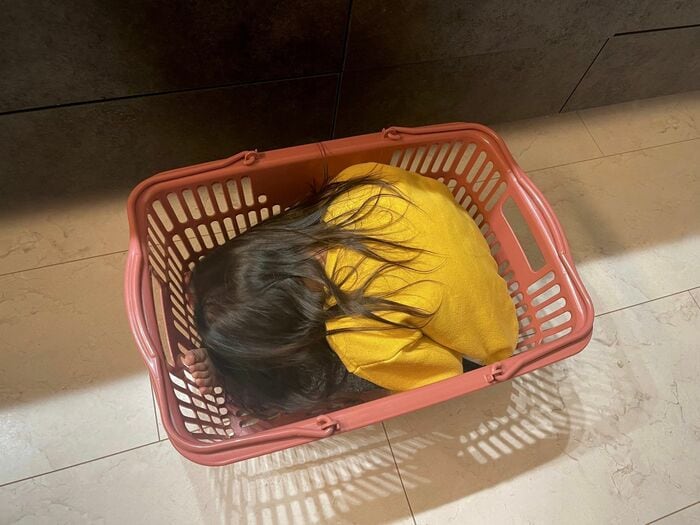 続いて隠れていた場所は、カゴ。