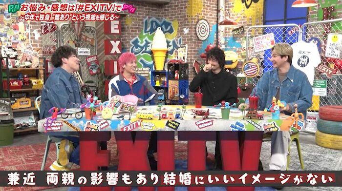 EXITがゲストとリラックスしたトークを繰り広げる『EXITV』(フジテレビ)。3月11日の放送回にはゲストに斎藤工さんとJOYさんを迎えて、それぞれの結婚観トークを展開しました。