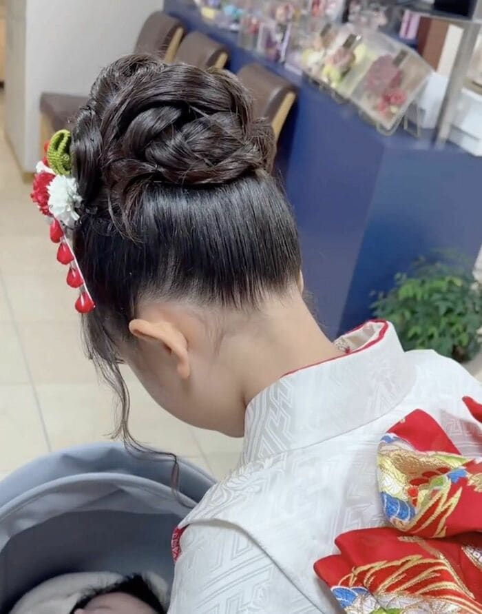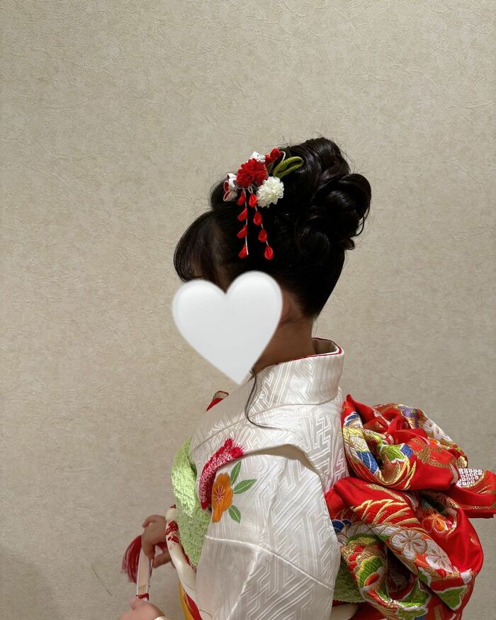 「七五三も無事に終わりました 早いなぁ。。。」というコメントとともに投稿したショットでは、お花が描かれた白い着物姿に身を包んだ長女の姿が!まとめ髪には赤色のお花がつけられています。