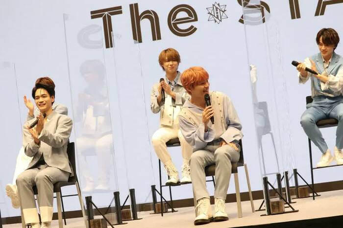 11月25日(水)に発売されるファーストアルバム「The STAR」について、金城碧海は「名前の通り、輝く星=JO1に出会える、というコンセプトになっています。自分で聴いても『僕たち、輝いているな』と思ってしまうくらい…」と、自画自賛を織り交ぜつつ説明する。