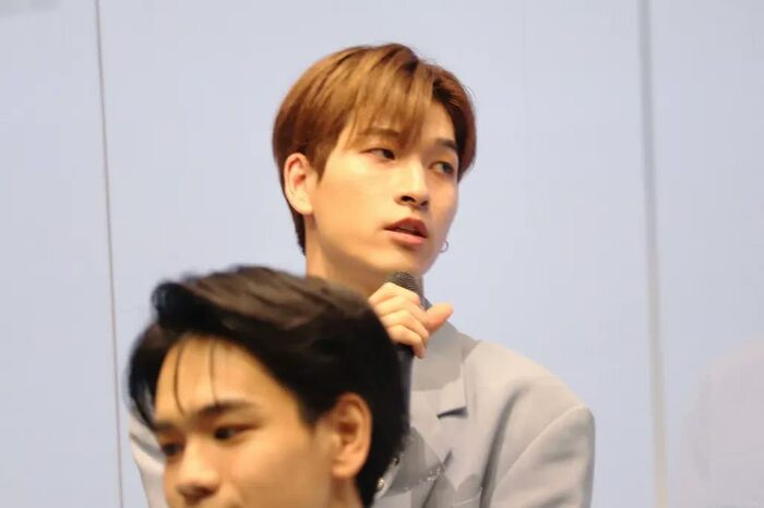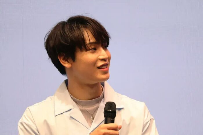 今回のアルバムにはオーディション中の課題曲も収録されていると大平祥生が説明。お気に入りの曲を聞かれた鶴房汐恩は「全部が素晴らしい中で、僕のお気に入りは『SAFETY ZONE』。女性を守るぜ、というテーマの曲なんですけど、序盤はずっとボーカルが続くんです。『ラッパー陣はラップせえへんのかい!』と、思ったら最後にラップがバァンと登場するので、素晴らしいです」と、“ラッパー陣”の一人として、ドヤ顔が隠せない様子。