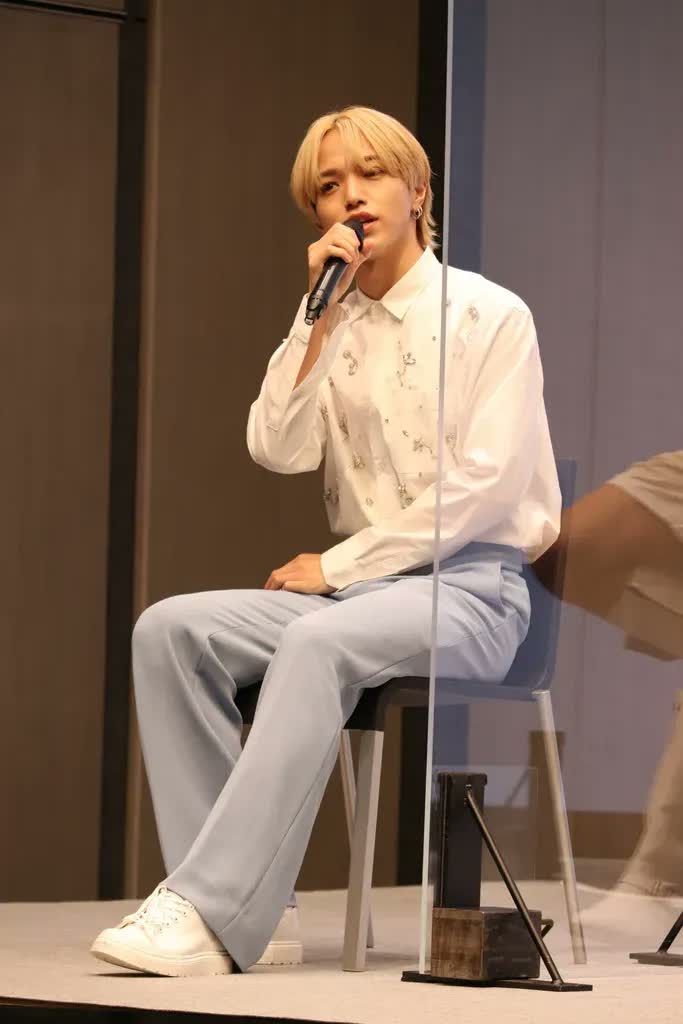 続く白岩は、今回のアルバムが冬に発売されることを理由に、オーディションの課題曲でもあった「Happy Merry Christmas」を推薦。「ロマンティックなラブソングなんですが、僕がオーディション中にセンターを務めさせていただいた曲でもありますし、今日も来るときに聴いてきたくらい、好きな曲です。冬にぴったりな曲です」と紹介した。