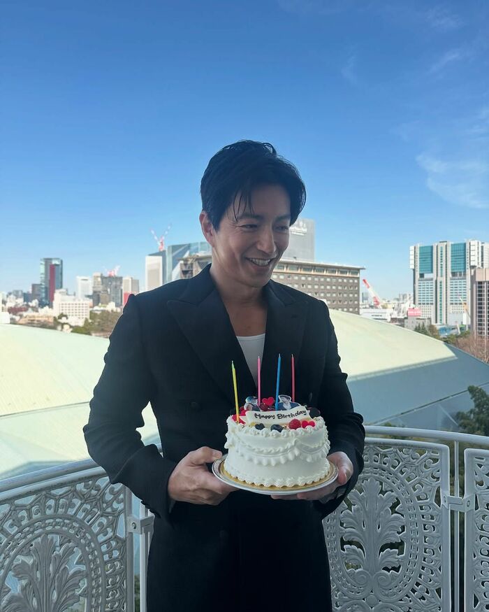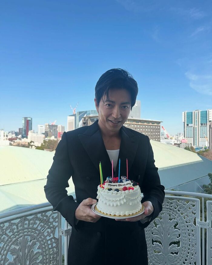 俳優の大沢たかおさんが、2025年3月14日に自身のインスタグラムを更新。青空バックでケーキを持ったショットを公開しました。