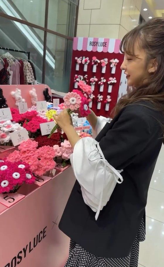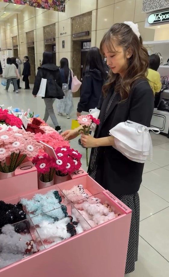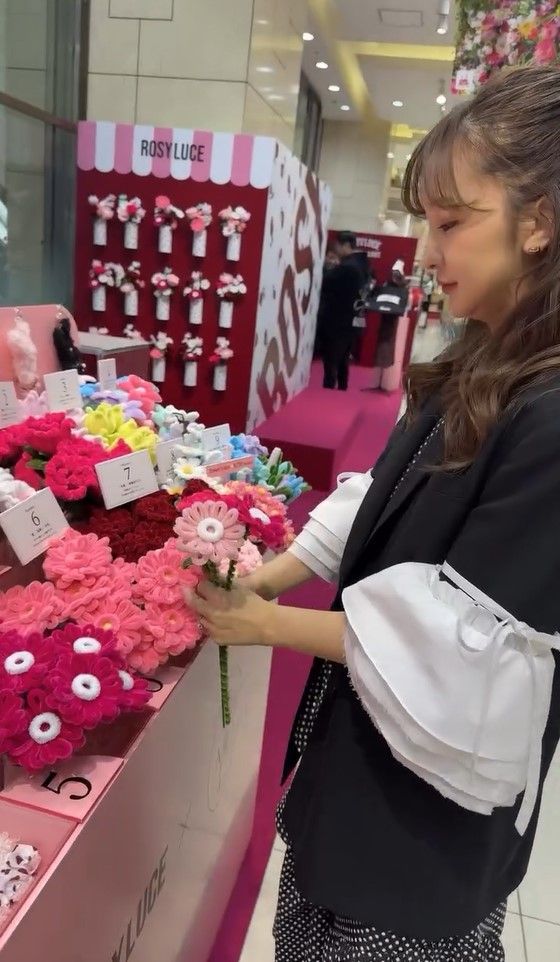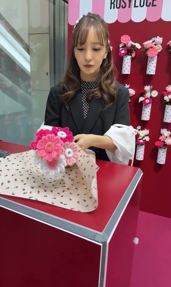 今回の投稿では、「モールフラワーで花束つくったよ❤︎」と自身がプロデュースするブランドのポップアップショップでの様子を公開しました。