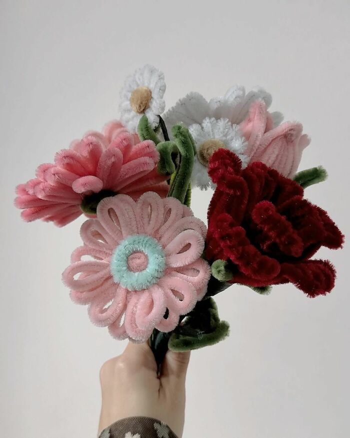 キュートなモールフラワーで花束を作る様子を公開しました。