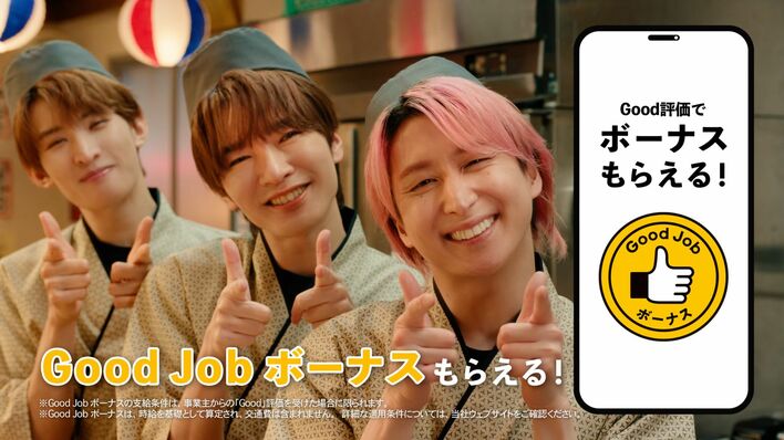 スポットのバイトサービス「スポットバイトル」のCMキャラクターに、Snow Manの深澤辰哉さん、佐久間大介さん、向井康二さんが就任。