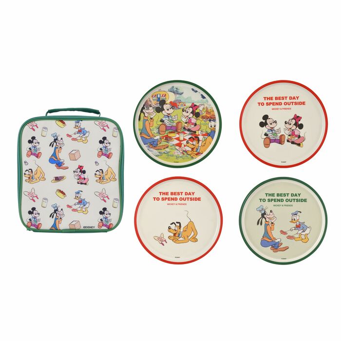 さらに、ミッキーやミニー、プルートたちが描かれたデザインが目を引くプレート4枚セットも登場。