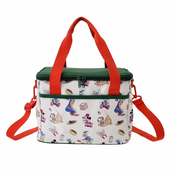 ミッキーやミニー、ドナルドたちが全面に描かれたクーラーバッグも登場します。持ち手の他に、取り外し可能なショルダーストラップが付いているので、肩掛けでも持ち運ぶことができます。