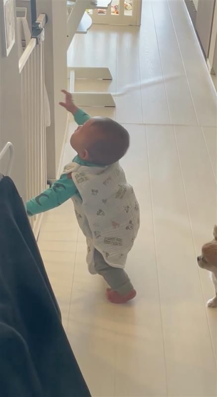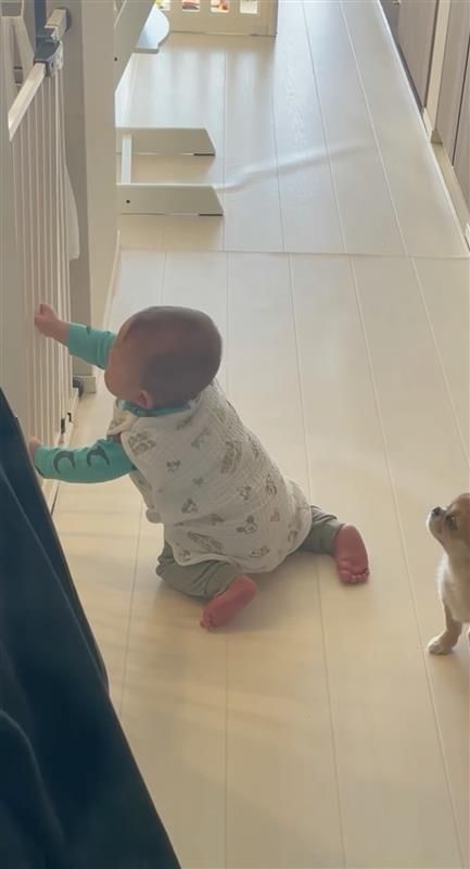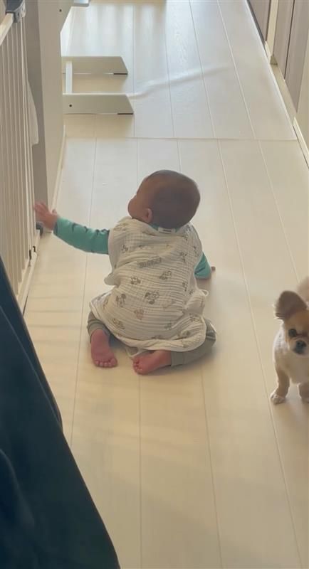 意を決した弟くんは、ハナちゃんがいた位置にハイハイで近づき、柵に手を伸ばしました!