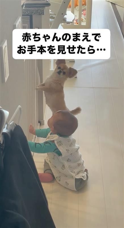 「ハイハイなどもですが、ハナお姉さんのことを参考にしているように思います」といい、弟くんは普段からハナちゃんの動きを”お手本”にしているそうです。