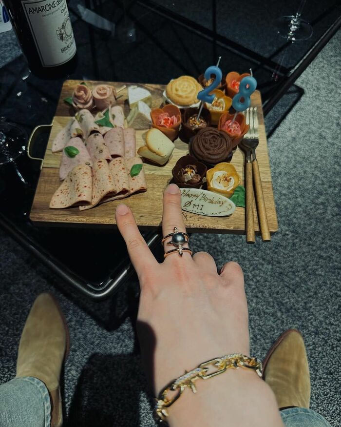 そして、ピースをしている手をプレートに向けているØMIさんは、投稿文で「28歳も頑張ります」とコメント。